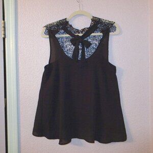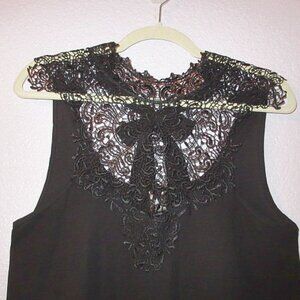 Vtg Y2K Sheer Mesh Tunic Top Size S Lace Neck Tie Back Steampunk Grunge Goth 90s