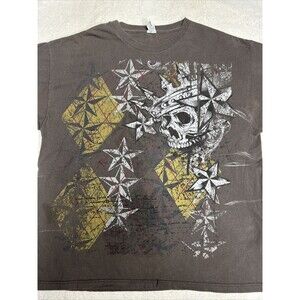 Vtg Y2K Skull Cyber Gothic Style Grahphic All Over Front Graphic T-Shirt Size XL. A few spots of discoloration on the armpits. Please see pictures for condition and measurements for proper sizing and fit.