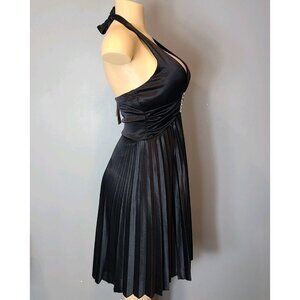 Vtg Y2K Speechless Halter Pleated Dress Size Small Black Babydoll Satin Gatsby