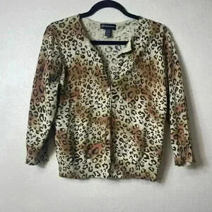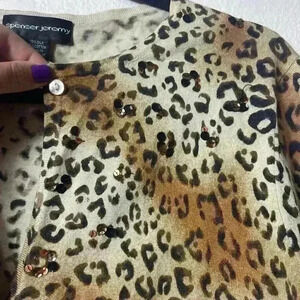 Vtg Y2K Spenser Jeremy Women L Silk Blend Cheetah Animal Print Cardigan Sequin