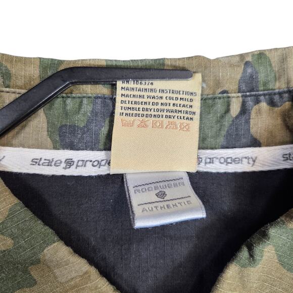 Vtg Y2K State Property Rocawear Camo Button Up Shirt Hip Hop Y2K 90's Sz 4X