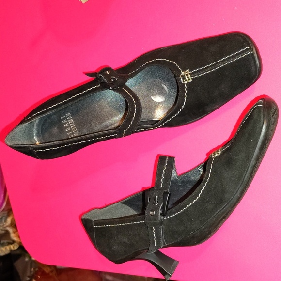 Vintage Y2K Gold!! These Black Suede Mary Jane Kitten Heels from Stuart Weitzman are definitely from the 2000s. Square toe. Kitten Heels. Sz 7.