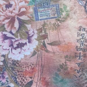 Vtg Y2K Sz Medium Multicolor All Over Asian Print Floral Short Sleeve Graphic T