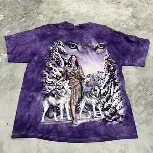 Vtg Y2K The Mountain 2003 Tie Dye T-Shirt Native American Wolf Snow Mens Size XL. Condition is Pre-owned - Good. Shipped with USPS Ground Advantage.