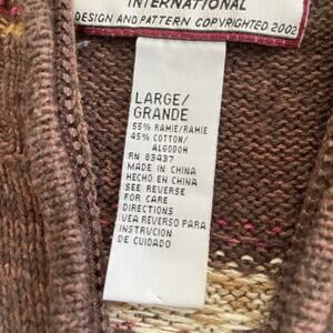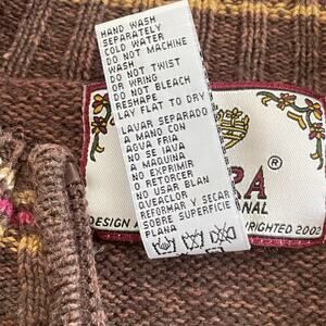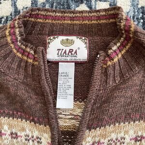 Vtg Y2K Tiara International Women's Sweater L Nordic Fair Isle Full Zip Brown