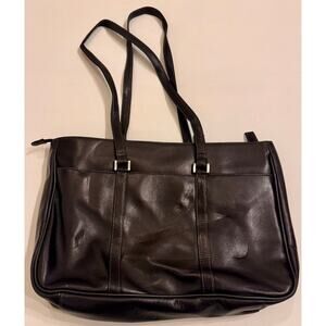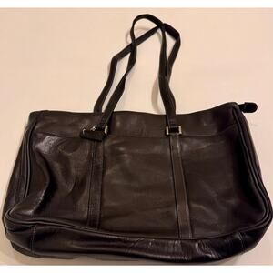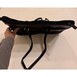 Vtg Y2K Tignanello Genuine Leather Laptop Tote Bag Purse Black 2 Pocket