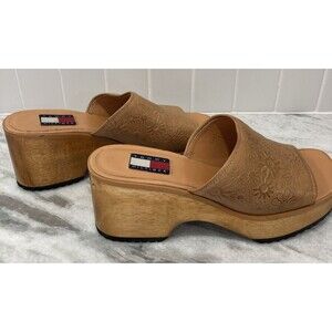 Vtg Y2K Tommy Hilfiger Platform Wooden Sandals Chunky Heel 7 Floral Hippie Boho