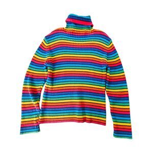 Vtg Y2K Tommy Hilfiger Ribbed Rainbow Sweater 90s Striped XL Colorful Turtleneck