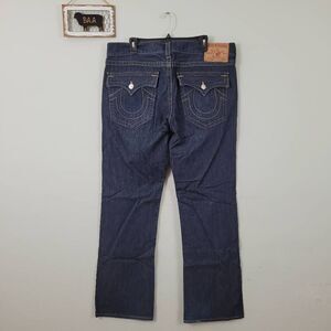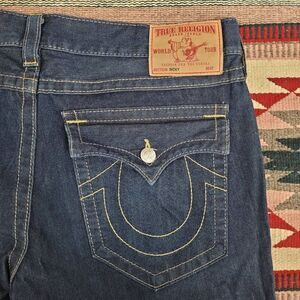 Vintage Y2K True Religion Ricky Dark Blue Wash Jeans, zip fly, Flap Pocket, made in USA.