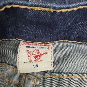 Vtg Y2K True Religion Ricky Dark Wash Jeans Sz 38x34 Distressed Flap Pocket USA