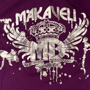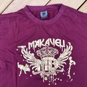 Vtg Y2K Tupac Makaveli Brand Mens Gold Foil Logo Graphic T Shirt Maroon 3XL 2Pac