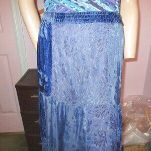 Vtg Y2K Velvet Patchwork Maxi Skirt Size XL Lace Tiered Full Witchy Fairy Grunge