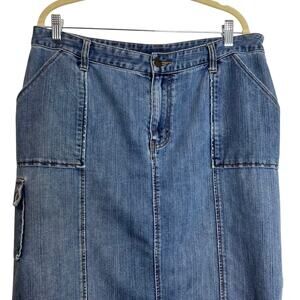 Vtg Y2K Venezia Womens Denim Skirt Size 16 Blue Jean Midi Cargo Utility Pockets