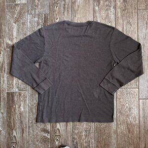 Vtg Y2K Waffle Knit Mens Thermal Long Sleeve Graphic Charcoal Gray Gothi…