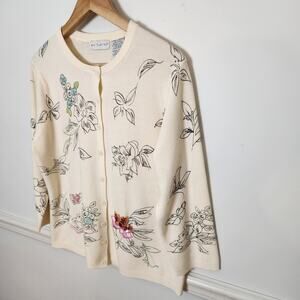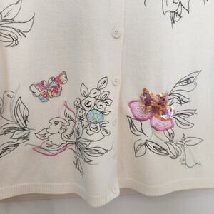 Vtg Y2K White Stag Cardigan Sweater Sz Large Womens Fairy Cottage Floral Sequin