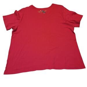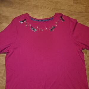Vtg Y2K Women's Pink Embroidered Top Sequined Blue Dragon Flies Size 1X CJ Banks