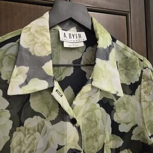 Vtg Y2K Womens Small Sheer Dark Floral Button Up Black Lime Fairy Grunge Goth