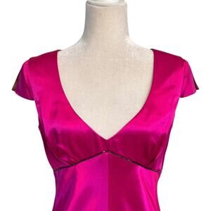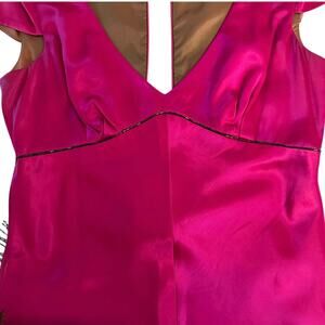Vtg Y2K does 30s ABS Allen Schwartz Embroidered Beaded Angled Hem Dress Sz 8
