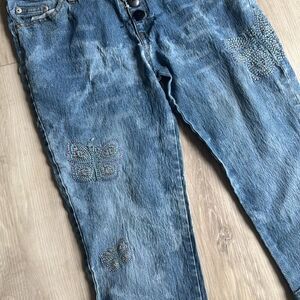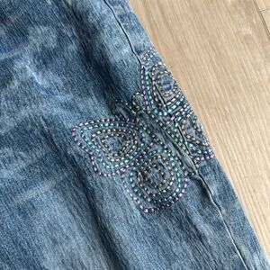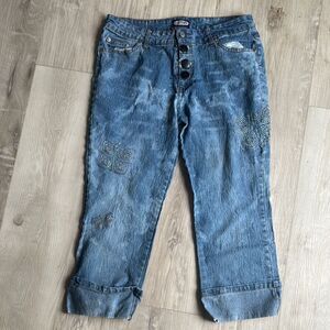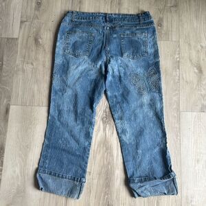 Vtg Y2K Zoey Beth Embroidered Butterfly Jean Capris Cut offs. Size Large
