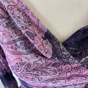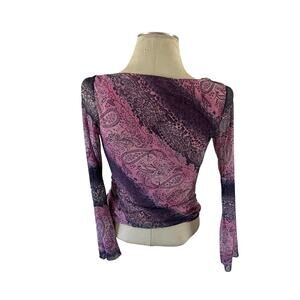 Vtg Y2k 2000s Purple Paisley Mesh Cowl Bell Sleeve Blouse Wmns S Fairycore