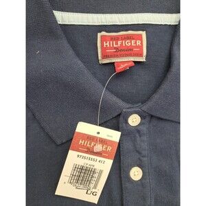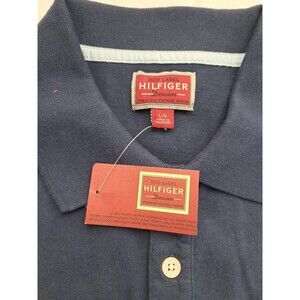 Vtg Y2k 2002 Navy Blue Mens Polo Hilfiger Pocket Crest Red Label Large Prep