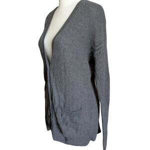 Vtg Y2k American Eagle AE Waffle Knit Cardigan Women M Grey Button Soft Thin