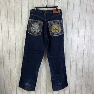 Vtg Y2k Brooklyn Xpress Baggy Denim 34 Dragon Embroidered Jeans Grunge Hiphop