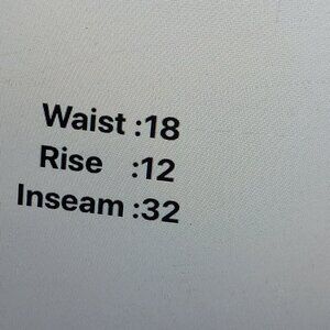 Waist: 18 inches, Rise: 12 inches, Inseam: 32 inches