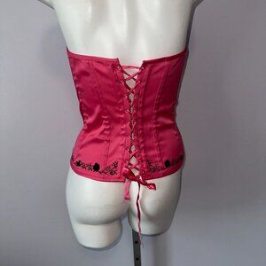 Vtg Y2k Charlotte Russe Neon Hot Pink Black Embroidered Demure Corset Top Large