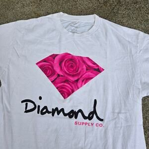 Vtg Y2k DIAMOND SUPPLY CO. Roses Diamond Spellout Graphic Skate Tee Shirt Lg