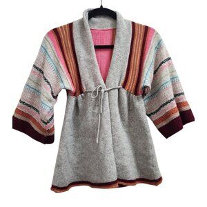 Vtg Y2k Free People Cardigan Sweater S Stripe Pink Red Turquoise Kimono Open