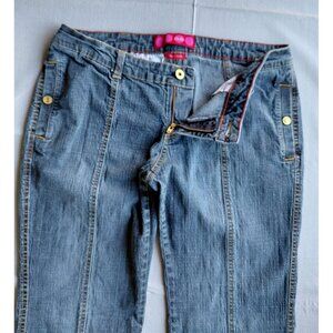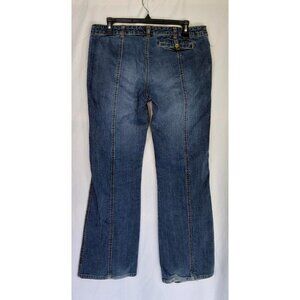 Vtg Y2k Glo Low Rise Flare Jeans 32x31 Stretch Dark Wash Denim Snap Pockets