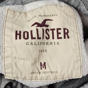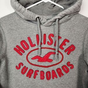 Vintage Y2k 2000s Hollister Hoodie Mens Size M ( Medium ) Pull Over Front Pocket Gray With Red Applique Lettering Spellout Embroidered Surfing Style