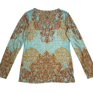 • Color: Aqua blue with brown and gold baroque pattern and rhinestone embellishments