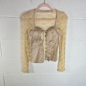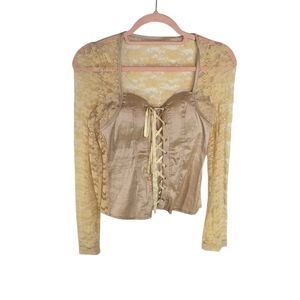 Vtg Y2k Lace Bustier Corset Long Sleeve Top