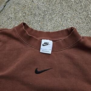 Vtg Y2k NIKE Embroidered Center Check Center Swoosh Logo Crewneck Brown Small