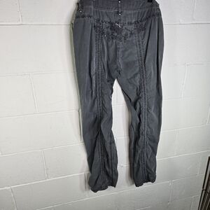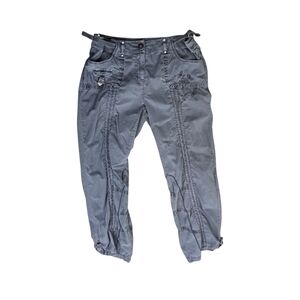Vtg Y2k Next Gray Embroidered Lagenlook Art To Wear Boho Utility Pants