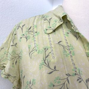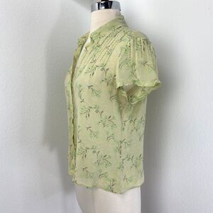 Vtg Y2k Old Navy Lime Green Sheer Silk Blouse Large Whimsy Fairy Peasant Boho