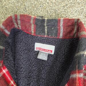 vtg y2k QUIKSILVER wide plaid all over pattern beach skate surf fleece lined button up flannel shirt
