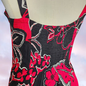 Vtg Y2k Serendipity Maui Red Black Floral Hibiscus Tropical Sun Dress Sz M