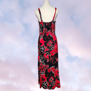 Vtg Y2k Serendipity Maui Red Black Floral Hibiscus Tropical Sun Dress. This dress has two intentional side slits near the front of the dress(shown in photos). Perfect spaghetti strap dress for vacation, can be used as a beach cover up as well.