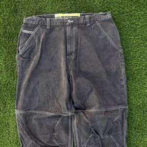 Vtg Y2k Solo Semore Denim Baggy Jeans Black Contrast Skater Pants Size 40x32