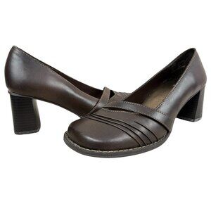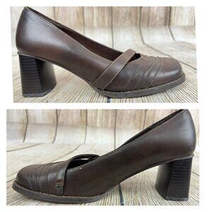 Vtg Y2k Square Toe Shoes 725 Originals Sz 8 Brown 90s Leather Chunky Block Heel
