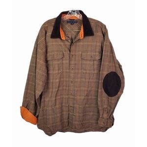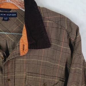 Vtg Y2k Tommy Hilfiger Houndstooth Plaid Shirt Elbow Patches Button Sz XL Brown