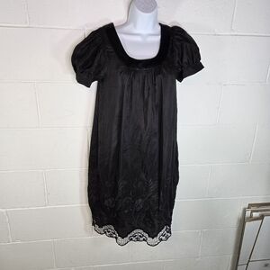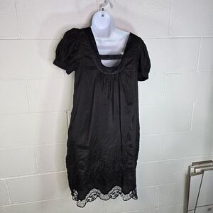 Vtg Y2k Voom By Joy Han Black Silk Eyelet Dress New Deadstock