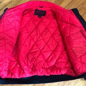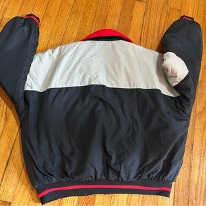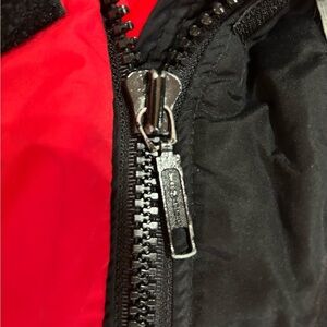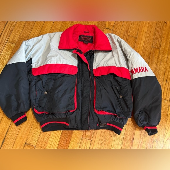 This vintage Yamaha snowmobiles jacket is a ladies size XL with a full zip and insulation, perfect for casual occasions during the winter, fall, and spring seasons. Made from 100% nylon with a solid black color featuring the iconic Yamaha snowmobiles design, this red and black jacket has a regular fit and long sleeves for added warmth. Machine washable for easy care, this 90s themed basic coat is a stylish and functional addition to any winter sports enthusiast's wardrobe.