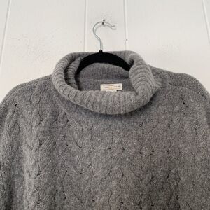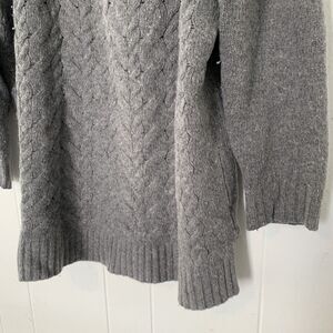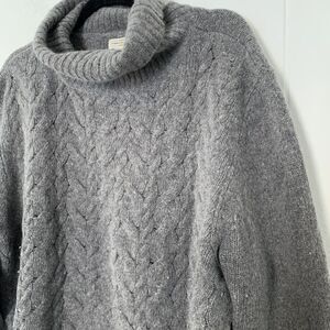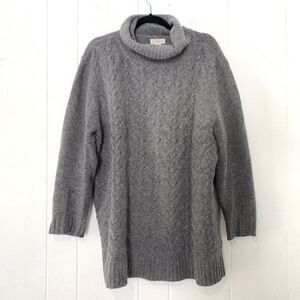 Vtg Yarnworks Womens XL Sweater 70% Lambswool Grey Turtle Neck Cable Knit Tunic.