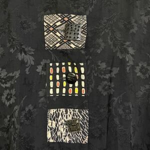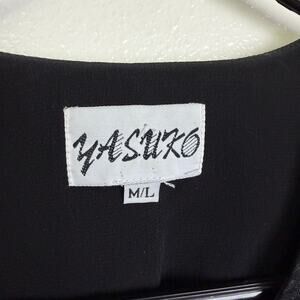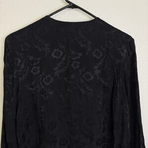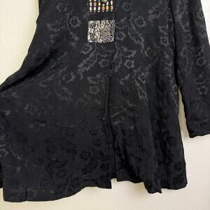 Vtg Yasuko Tunic Top Black M/L Womens Long Sleeve Jacquard Floral Artsy Button
