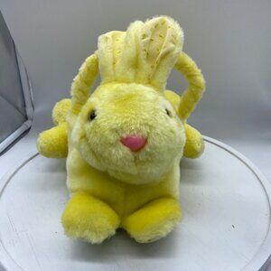 Vtg Yellow Bunny Rabbit Plush Easter Basket Stuffed Animal 8"x13" Floral Lining