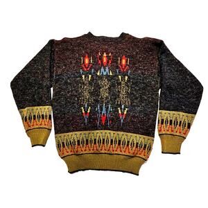 Vtg Zeppelin Sweater Mens Small Bold Geometric Pattern Pullover Gray Tan Red